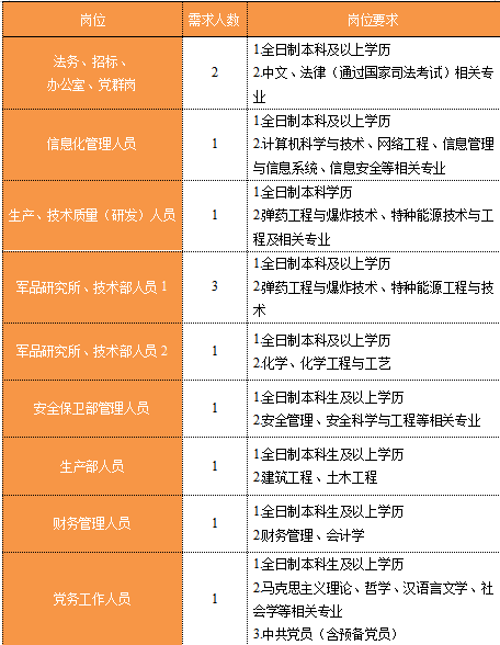 福建省機電(控股)有限責任公司(福建省國防科技工業公司)是由原省國防科工辦所屬企業為主,原省機械廳所屬企業劃入組建的省國資委出資的國有企業,現有全資、控股和參股企業22家。 在閩唯一一家地方軍工企業; 民爆物品生產與銷售資質、軍品科研與生產資質、硝酸銨生產與銷售資質、營業性爆破作業單位一級資質、礦山工程施工總承包一級資質、環保工程專業承包三級資質; 國家甲級設計院,擁有工業與民用建筑工程設計、咨詢、工程監理等綜合資質; 華東地區最大的硝酸銨生產企業... 省級重點實驗室 1個 省級工程技術研究中心 2個 省級企業技術中心 3個 省級技能大師工作室 2個 五險二金 帶薪年假 工會福利 健康體檢 午餐補貼 通訊補貼 文體活動...... (一)基本條件 1.具有中華人民共和國國籍,擁護中國共產黨的領導,熱愛社會主義; 2.遵紀守法,無違法違紀違規等不良記錄; 3.具有良好的身體素質和心理素質; 4.具備符合崗位要求的文化程度和工作能力。 (二)資格條件 2024年應屆高校畢業生(含:①2024年當年度應屆高校畢業生,以畢業證書落款年度為準,已簽訂就業協議、勞動合同、繳交社保等均不影響應屆生身份人認定;②2023年度畢業、具有工作經歷及社保繳交記錄的高校畢業生),且在2024年1月1日至2024年12月31日期間取得學歷學位證書;2024年1月1日至2024年12月31日期間取得國(境)外學位、完成教育部留學服務中心學歷認證后初次就業的留學回國人員。 聯系人:蔣女士 聯系電話:0591-62790002 工作地點:福建福州 1.福建兵工裝備有限公司 聯系人:吳先生 聯系電話:0598-3838649 工作地點:福建永安、福建漳州 1.福建海峽科化股份有限公司分公司 聯系人:葉先生 聯系電話:0598-3868633 工作地點:福建永安、福建龍巖、福建福安、福建明溪 2.福建海峽科化富興建設工程有限公司 聯系人:楊女士 聯系電話:18250589968 工作地點:福建三明 3.福建民化建設工程有限公司 聯系人:鄒女士 聯系電話:13950807836 工作地點:福建省內 4.青海青樂化工機械有限責任公司 聯系人:李先生 聯系電話:0972-8655285 工作地點:青海省海東市樂都區 5.青海海西東諾化工有限公司 聯系人:郭先生 聯系電話:13860516289 工作地點:青海省德令哈市 聯系人:李女士 聯系電話:0591-87386017 工作地點:福建福州 本次招聘采用網上報名方式,符合崗位招聘條件的應聘者,請如實填寫《福建省機電(控股)有限責任公司公開招聘2024年應屆畢業生報名登記表》(點擊福建省機電(控股)有限責任公司公開招聘2024年應屆高校畢業生報名登記表.docx下載),并將報名登記表(PDF版)和個人簡歷(PDF版)統一打包壓縮后,投遞至指定郵箱:fndic25@163.com;并將郵件標題名稱命名為“崗位+姓名+畢業院校+專業” 即日起開始接受報名,截止時間為2024年7月31日。 招聘工作按照簡歷投遞-資格審查篩選-筆試-面試-發放OFFER-體檢-公示-簽約錄用等程序進行。 資格審查貫穿招聘全過程,在招聘各環節若有發現報考信息不實、條件不符等情形的,一律取消應聘資格,不得進入下一環節;已經錄用的,我司有權解除勞動關系,由此發生的個人損失由應聘人員自行承擔。 按照招聘條件對應聘人員進行資格審查,擇優確定參加筆試和面試人員。審核通過者將通過電話或郵件方式通知,審核未通過者不再另行通知。 公開招聘工作堅持“公開、平等、競爭、擇優”的原則,嚴肅紀律,秉公辦事,嚴禁弄虛作假,徇私舞弊,全程接受紀檢監察部門和社會的監督。報考者有弄虛作假、違紀違規行為的,一經發現,均取消其應聘資格,并將有關情況通報其所在學校或單位。構成犯罪的,依法追究刑事責任。